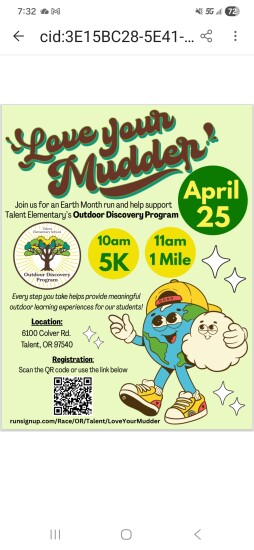 Talent Elementary School’s Outdoor Discovery Program (ODP) invites you to join us for an Earth Month 5K and 1-Mile trail running event at Colver Fields on Saturday, April 25th!