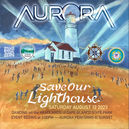 AURORA will be performing at the event and the Tide Morris Dancers will perform in front of the Cape Blanco Lighthouse as part of a nationwide effort to celebrate lighthouses by the U.S. Lighthouse Society. A video recording of the event will be created and sent to the USLHS to document our gala celebration along with other participating lighthouses. Artwork from supporters of our lighthouse will be on display in the Greeting Center Gift Shop. The concept behind this art exhibit is to raise awareness of the current need for repairs at our lighthouse.