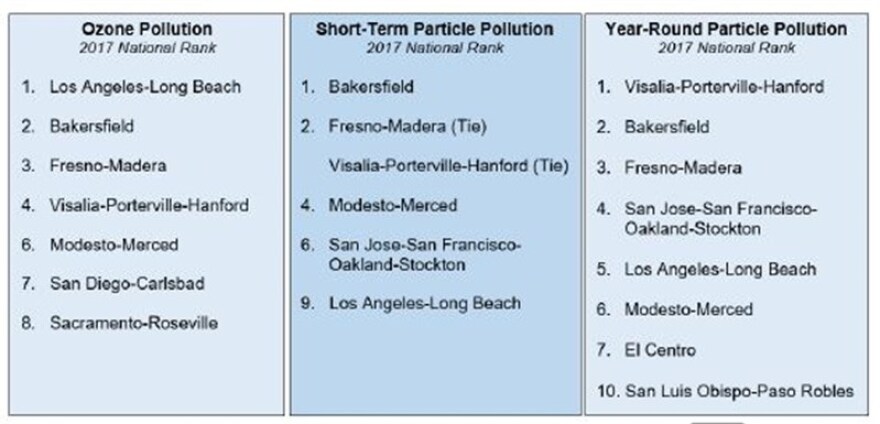 The American Lung Association says California cities continue to have the most polluted air in the country. The annual State of the Air report also finds wildfires and drought are contributing to an increased number of days with air pollution from soot.