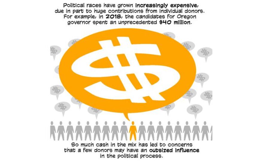 In the absence of campaign finance limits, campaigns in Oregon have grown increasingly expensive. One signature example: The 2018 race for Oregon governor, which shattered records and resulted in the candidates spending nearly $40 million combined.
