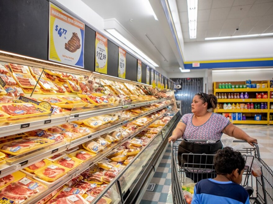 “If it’s not under a dollar then I don’t buy it,” Martinez said, bypassing $2 lettuce as Caden clambered into her grocery cart. “It’s about stretching the dollar.”