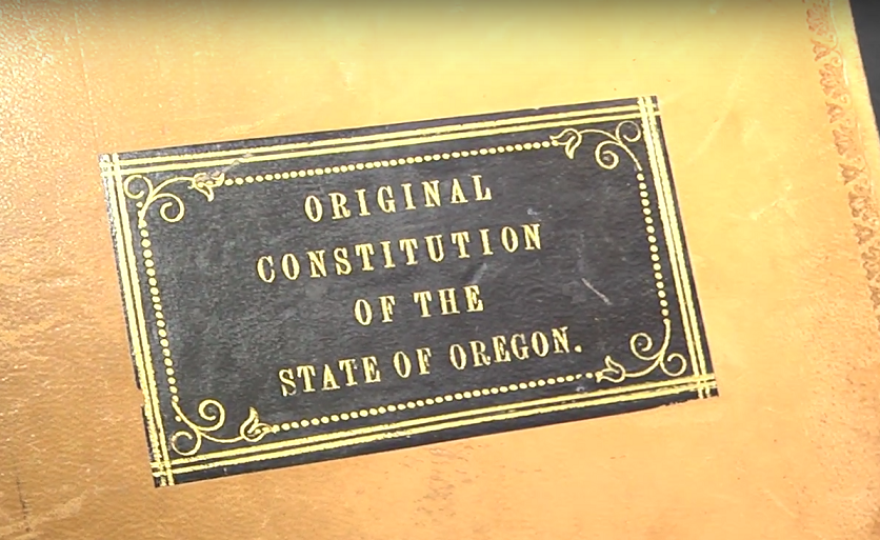 Oregon's first constitution, though younger by 70 years, is not healthy enough for public display. Paper doesn't age well.